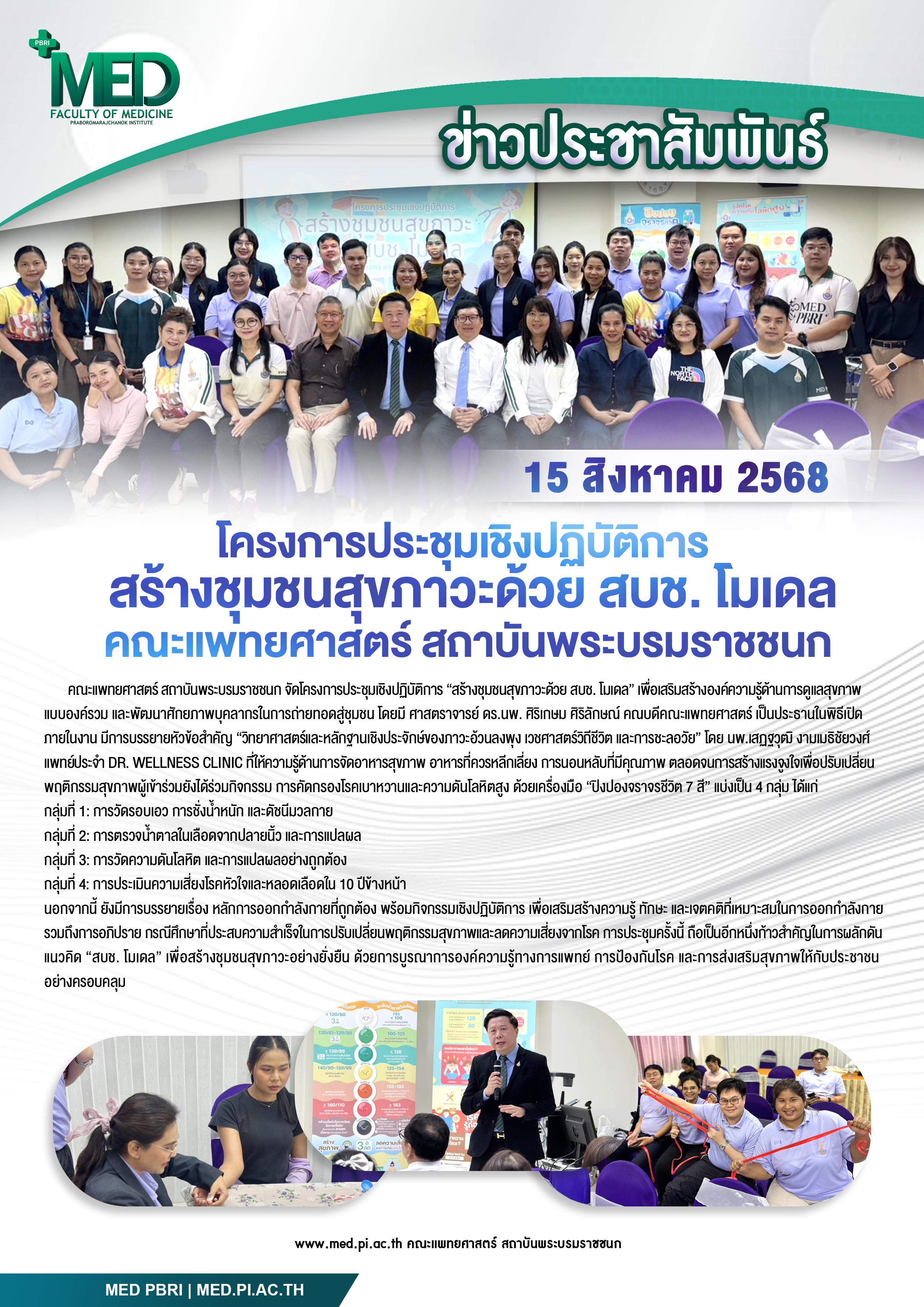 โครงการประชุมเชิงปฏิบัติการ สร้างชุมชนสุขภาวะด้วย สบช. โมเดล คณะแพทยศาสตร์ สถาบันพระบรมราชชนก 18 ส.ค. 256820 ส.ค. 2025admin med.pbriข่าวประชาสัมพันธ์